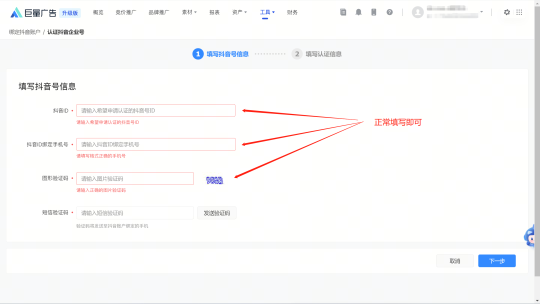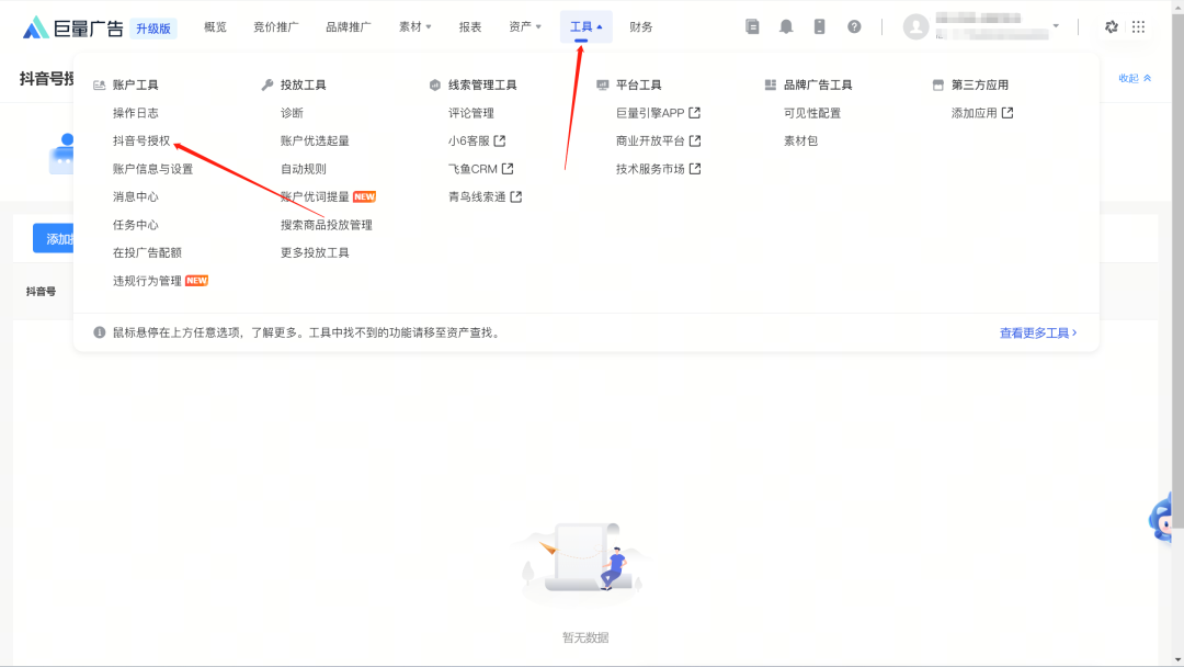 1、打开你的巨量引擎(我给你开的广告账户)-工具-抖音号授权